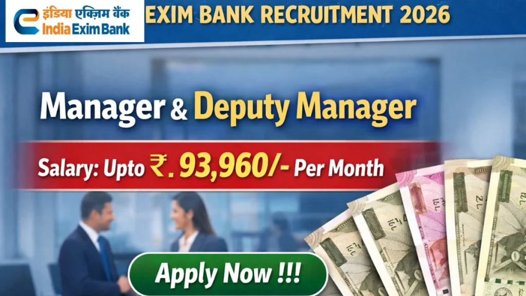 Exim Bank Recruitment 2026: The Export-Import Bank of India (Exim Bank) has released an official notification for Exim Bank Recruitment 2026, inviting applications for Manager and Deputy Manager posts. This recruitment drive offers a valuable opportunity for candidates who want to build a career in the banking and financial sector, particularly in international trade finance and export promotion. Interested and eligible candidates can apply through the online application process available on the official website.