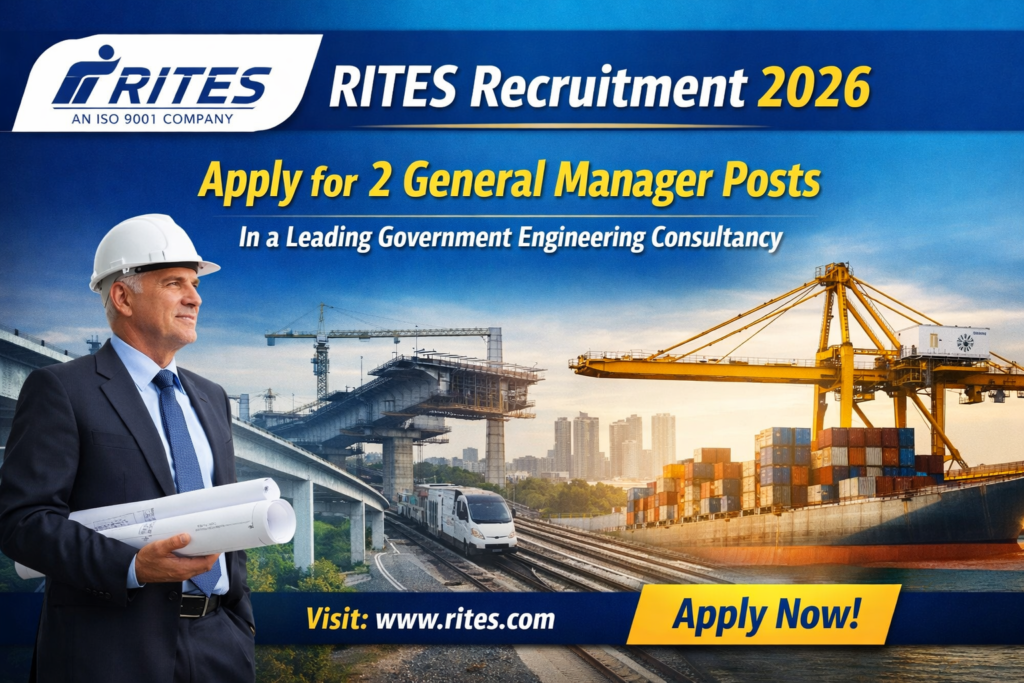 RITES Recruitment 2026 notification has been released for 2 General Manager posts, offering an excellent opportunity for experienced professionals seeking senior-level positions in the government sector. RITES Limited, a leading engineering consultancy company under the Ministry of Railways, has invited applications from eligible candidates for these prestigious positions. Candidates with strong experience in infrastructure, engineering, and project management are encouraged to apply.